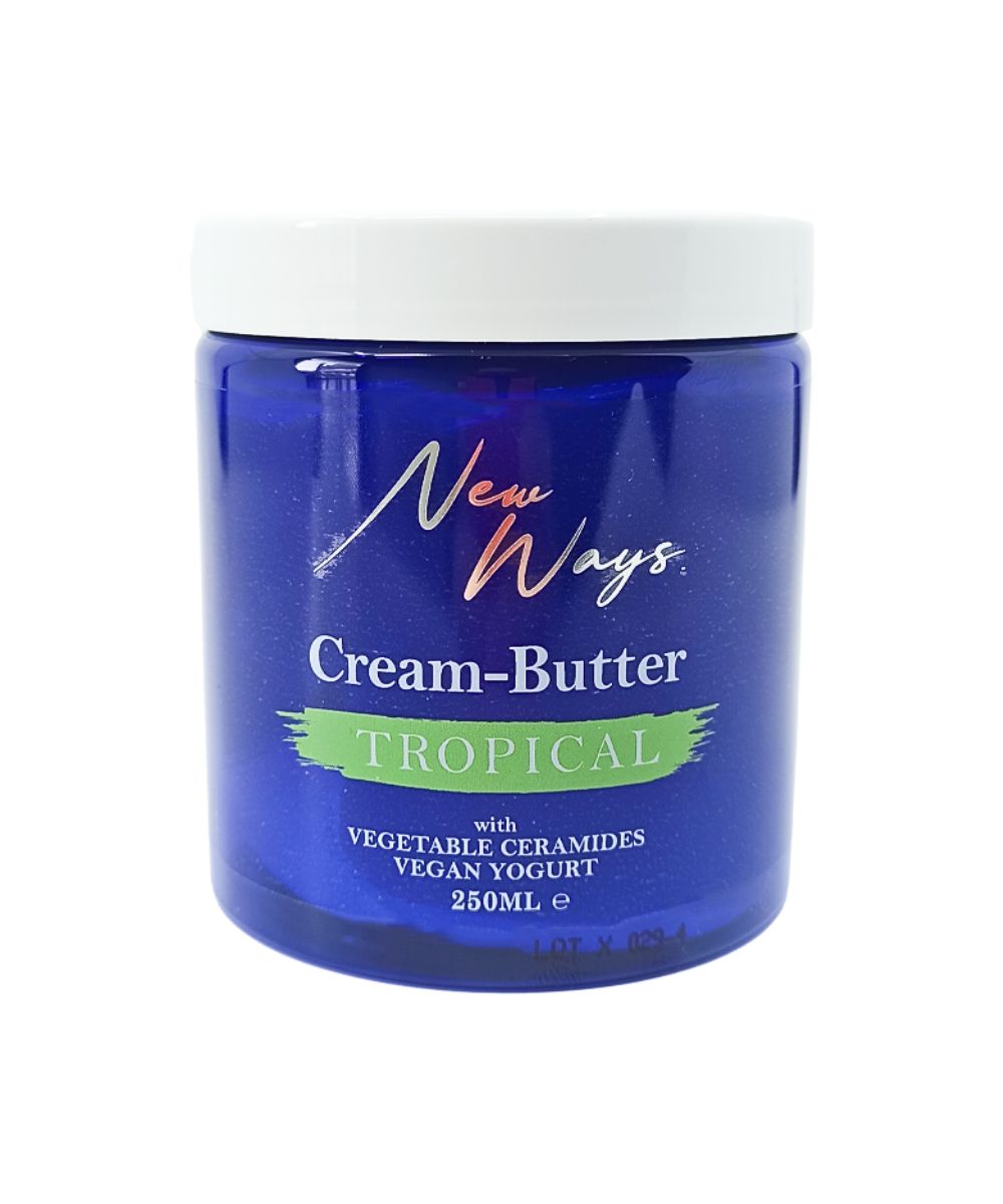Το Body Cream-Butter Tropical της NEW WAYS, συνδυάζει με τη μοναδική φόρμουλά του Κρέμα και Βούτυρο σώματος, διαθέτει πλούσια, μη λιπαρή υφή που ενυδατώνει την επιδερμίδα σε βάθος, αποκαθιστά τον φυσικό επιδερμικό φραγμό και προσφέρει άμεση θρέψη & απαλότητα στο δέρμα.